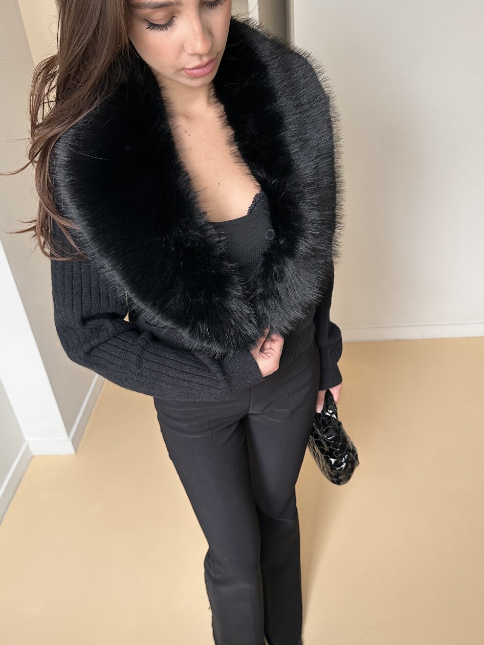 Кардиган на застежках со съемным мехом