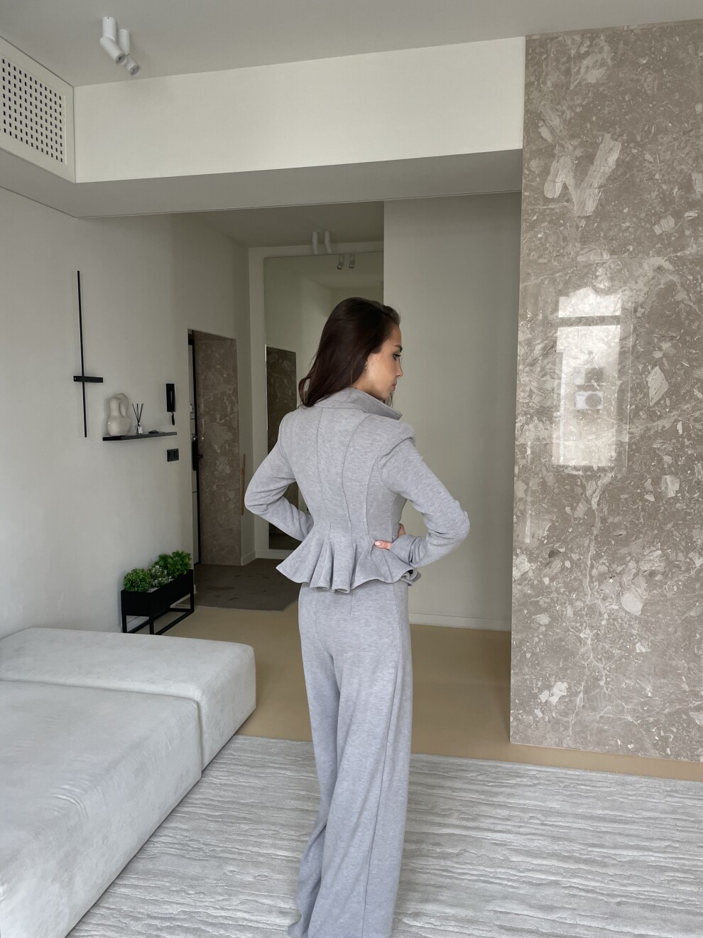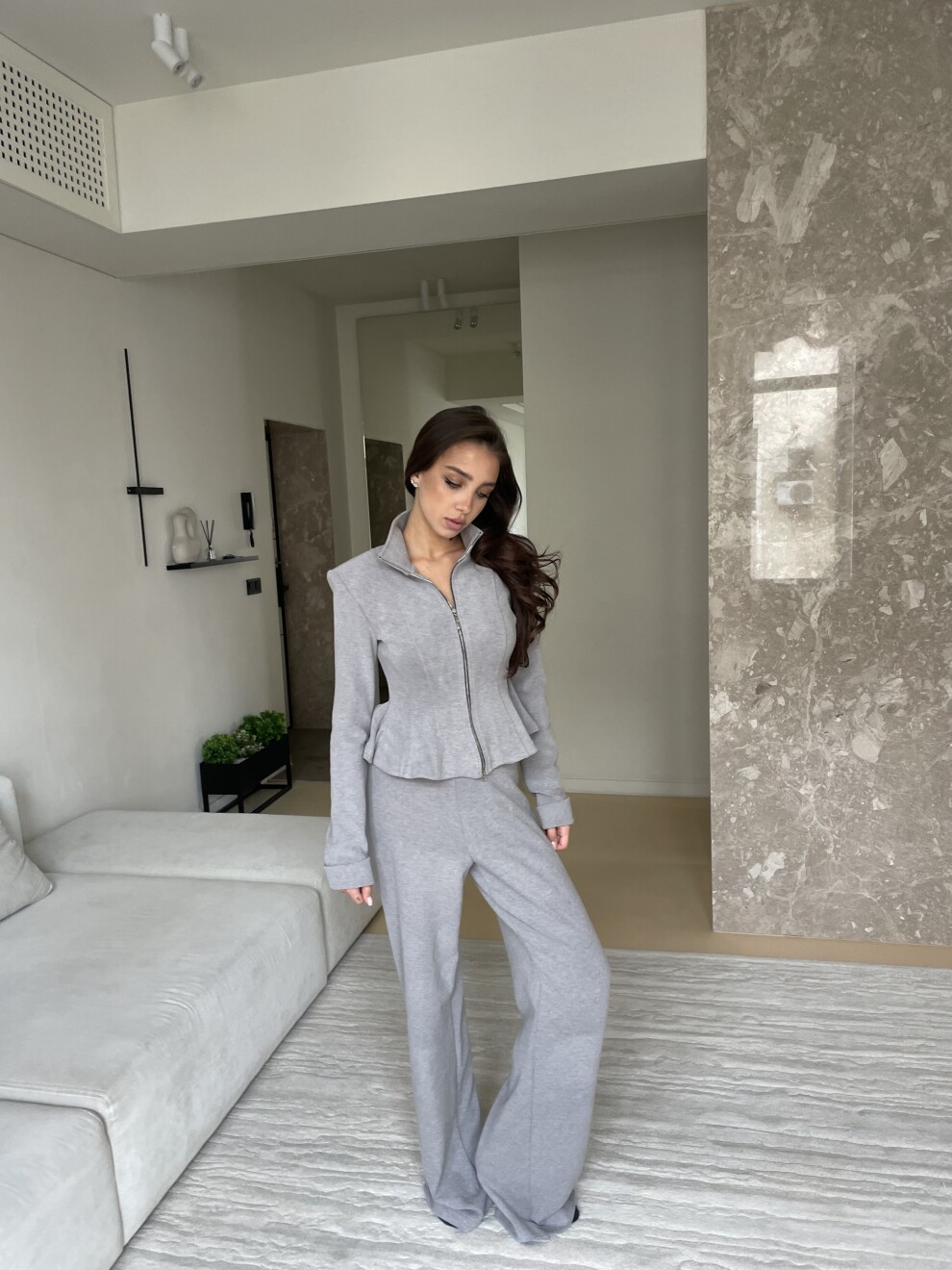 Костюм с баской из трикотажа