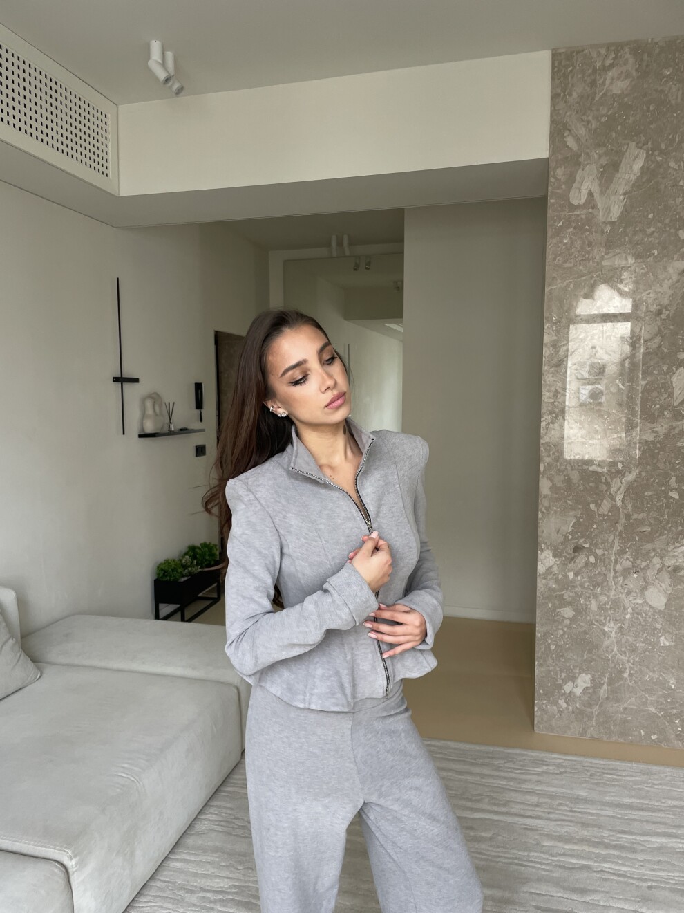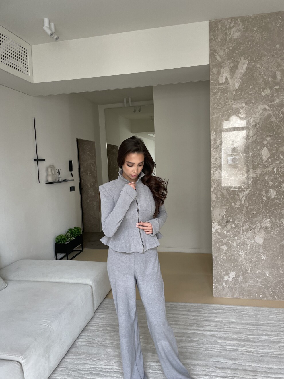 Костюм из трикотажа с добавлением шерсти с акцентной баской