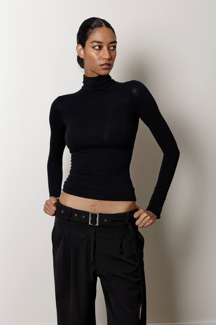Водолазка из тонкой кулирки и удлиненными рукавами