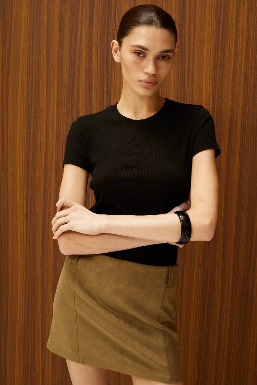 Юбка выполнена из эко замши.